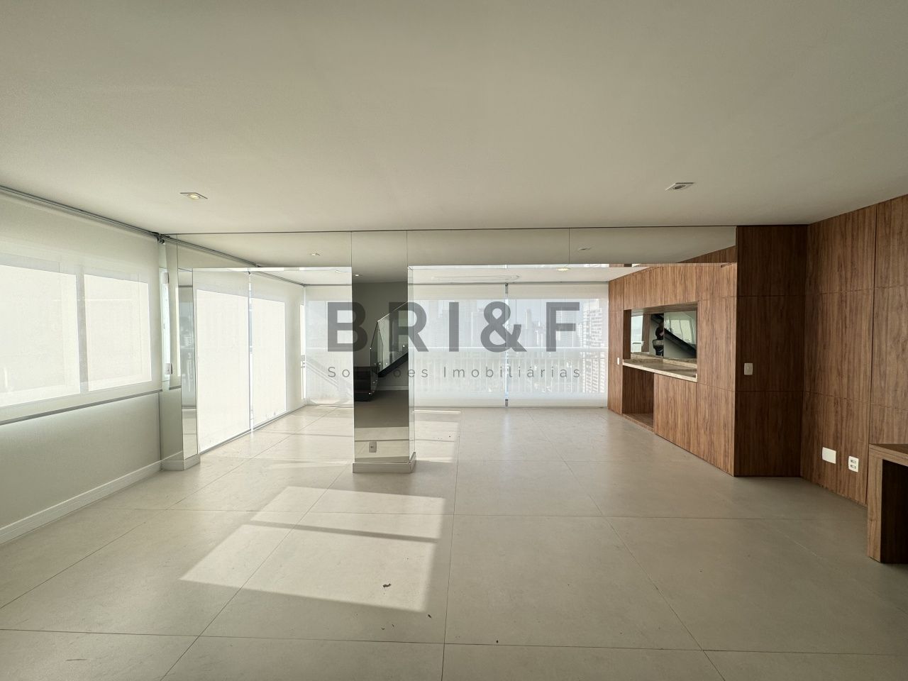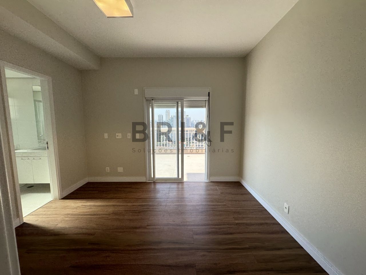 Living e suíte master com persianas automatizadas
