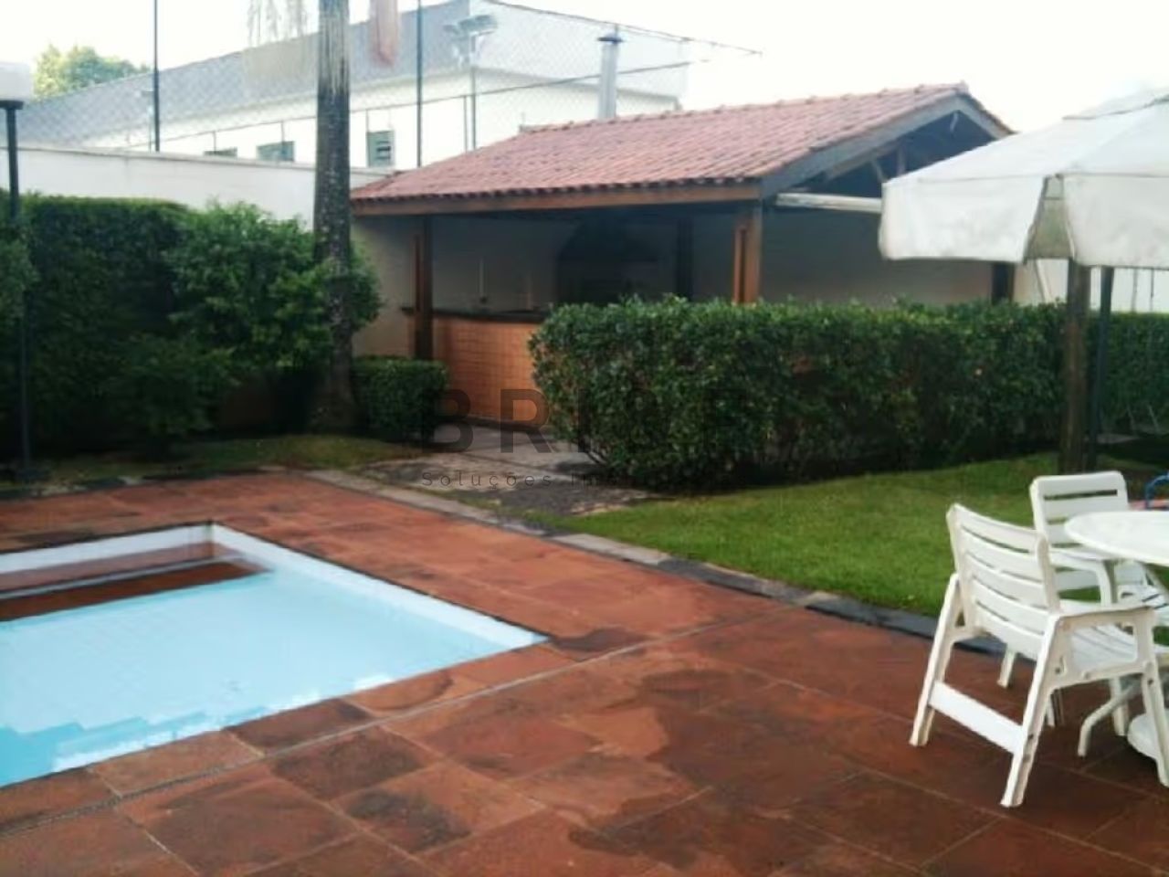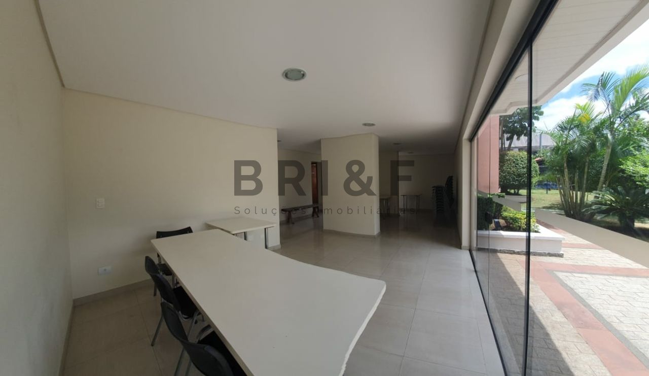 Condomínio com área verde, piscina adulto e infantil, salão de festas e churrasqueira.