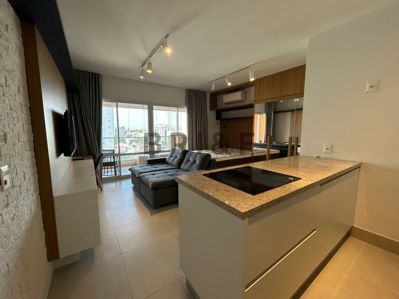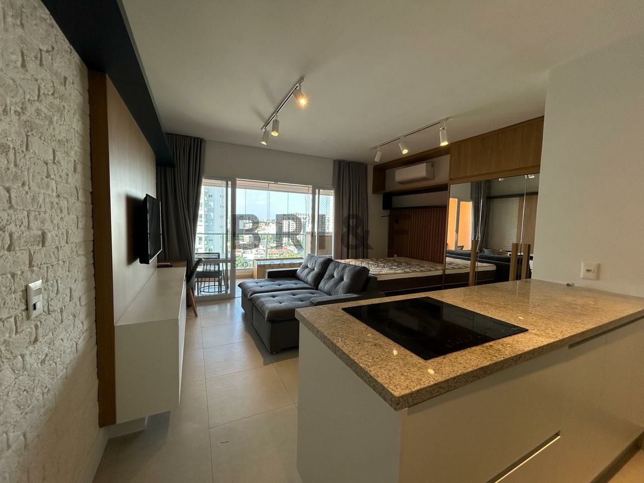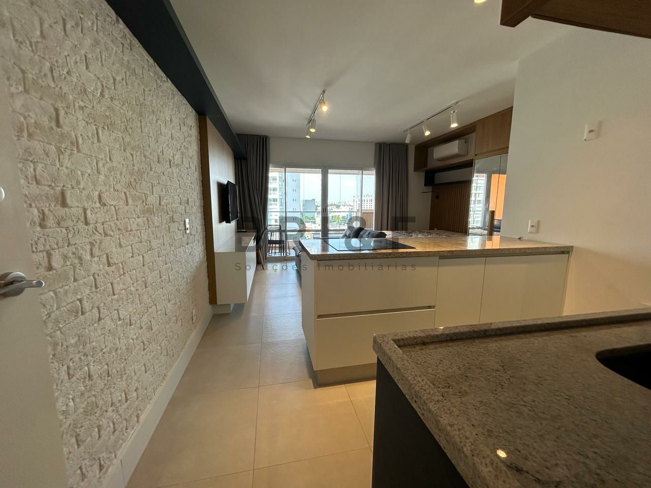 Apartamento novo com 42 m², com um dormitório, sala de estar e jantar integrada com a varanda, cozinha americana com eletrodomésticos, banheiro social e 1 vaga de carro.