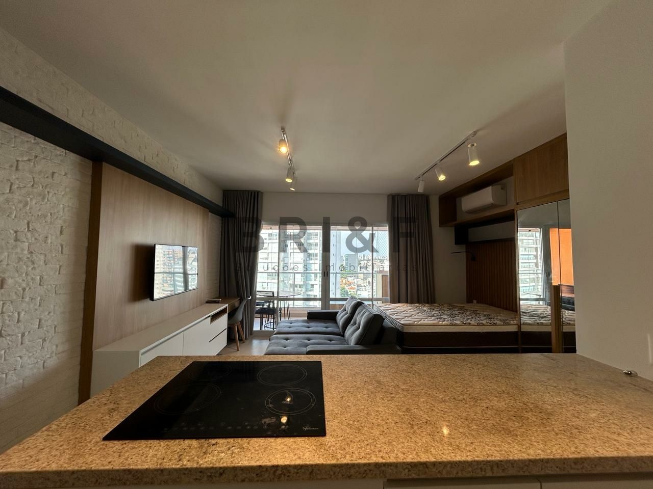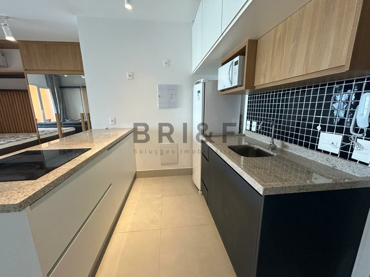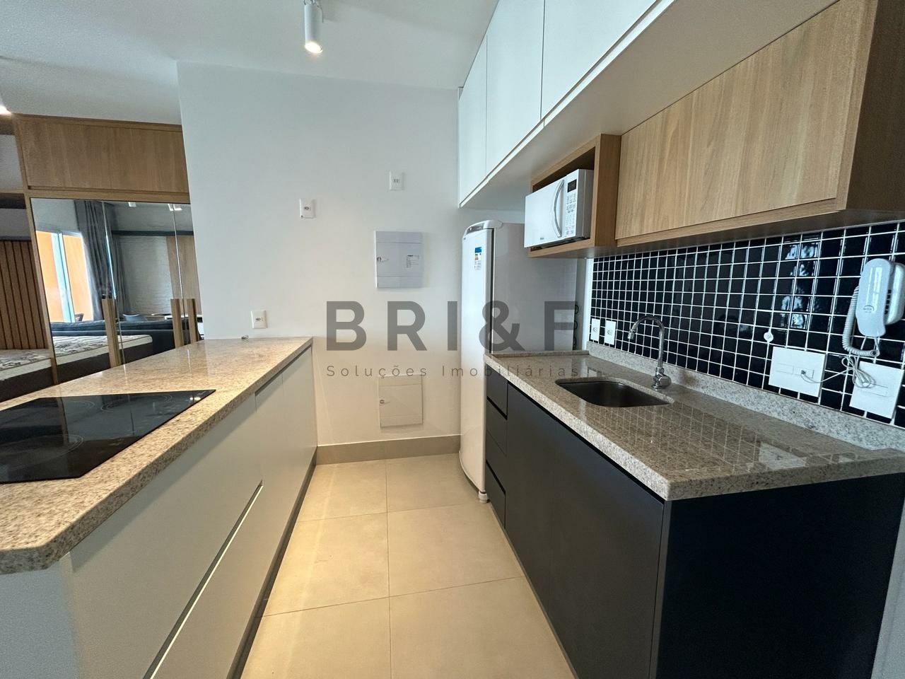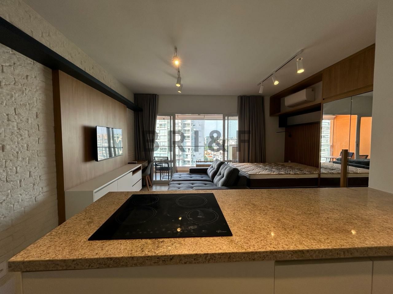Apartamento novo com 42 m², com um dormitório, sala de estar e jantar integrada com a varanda, cozinha americana com eletrodomésticos, banheiro social e 1 vaga de carro.