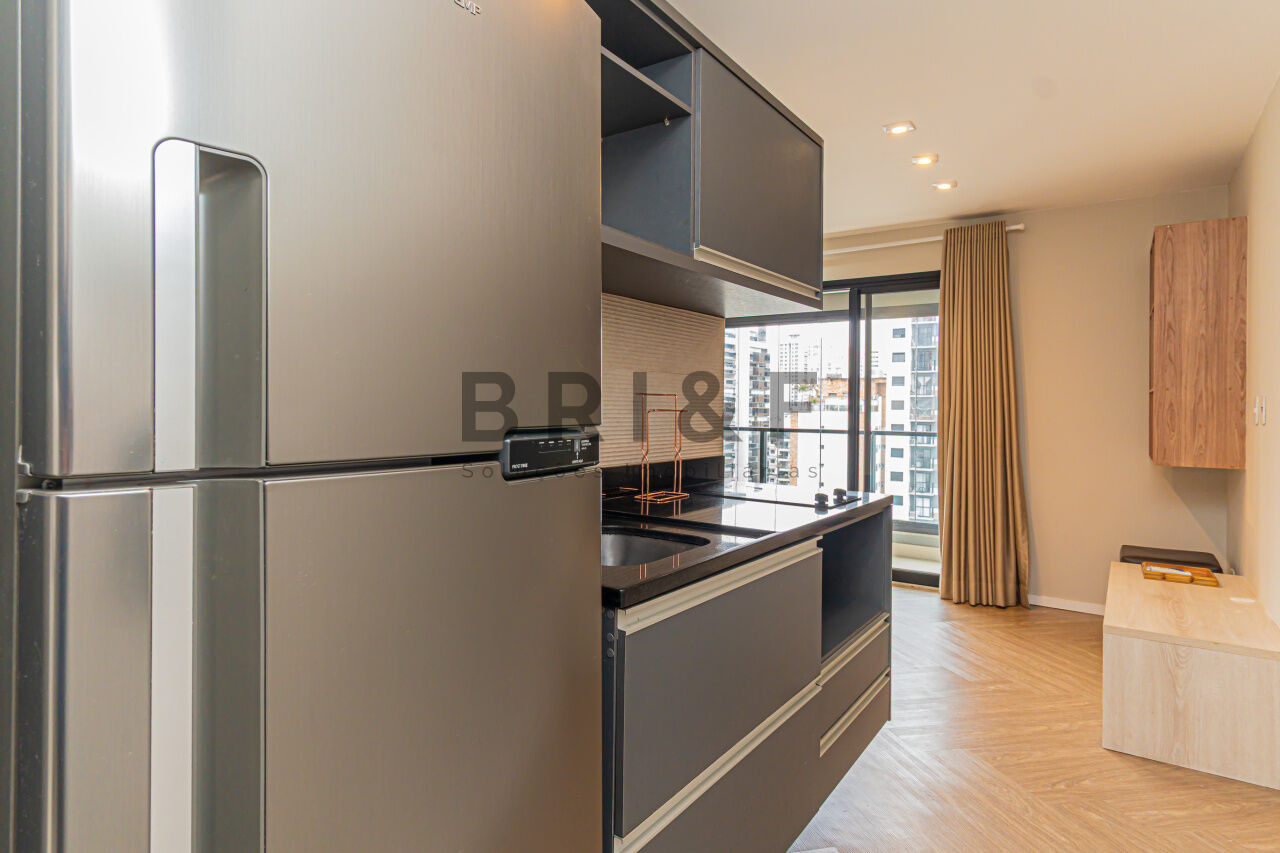 APARTAMENTO STUDIO COM VARANDA, PARA LOCAÇÃO OU VENDA, SEMI MOBILIADO, AR CONDICIONADO, ARMÁRIOS PLANEJADOS, GELADEIRA, SOFÁ, COOKTOP, ANDAR ALTO COM VISTA, 1 VAGA, LAZER COMPLETO NO CAMPO BELO
