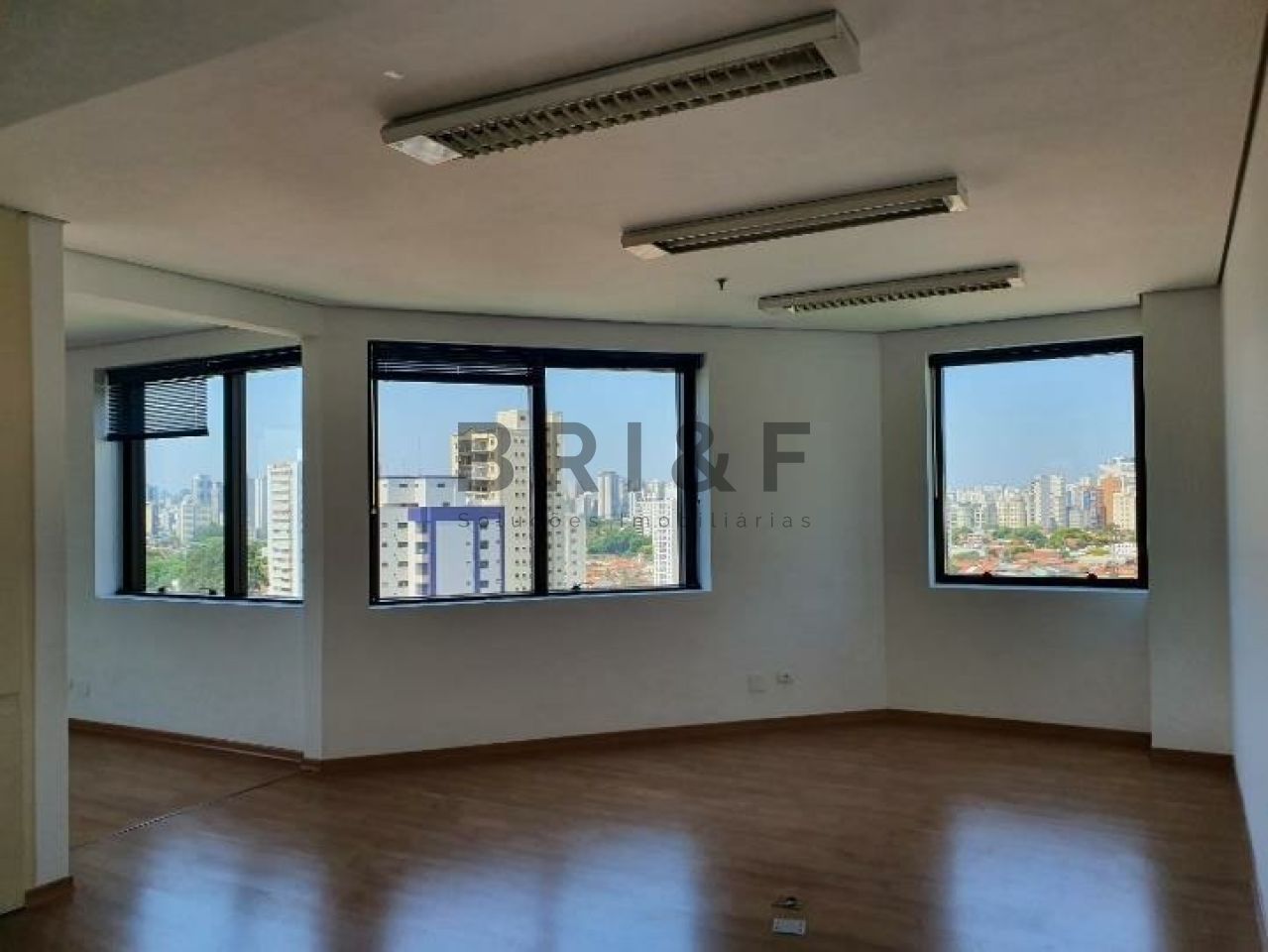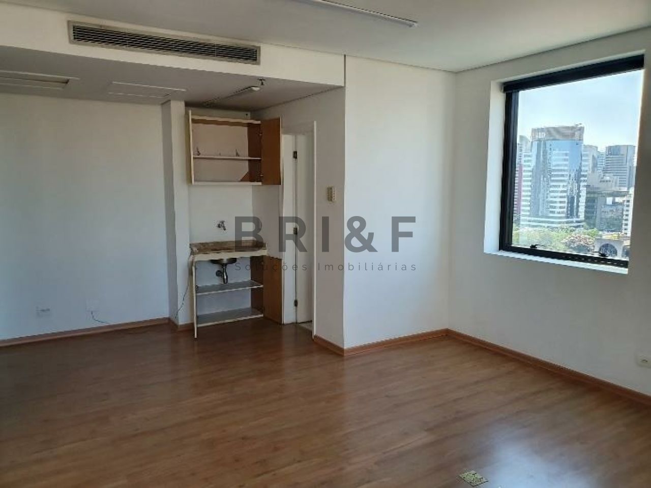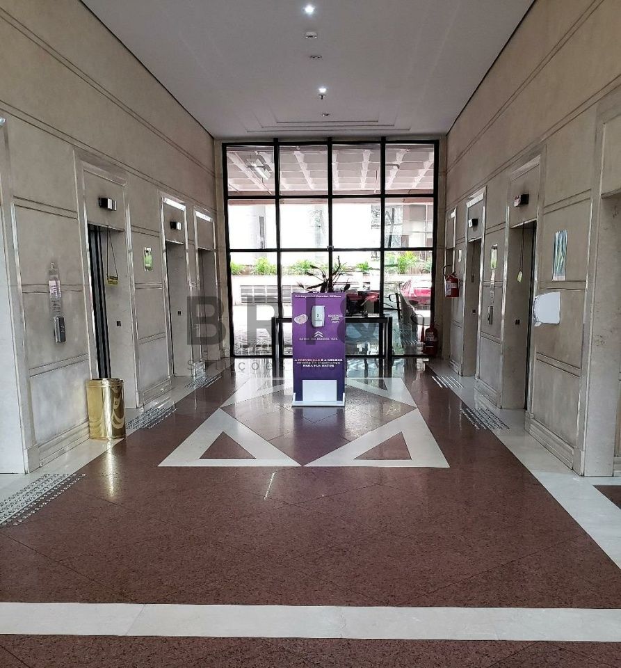 Excelente e ampla sala comercial com 1 banheiro, copa, 1 vaga de garagem e ar-condicionado central e detector de fumaça, sensor de calor, Sprinklers.