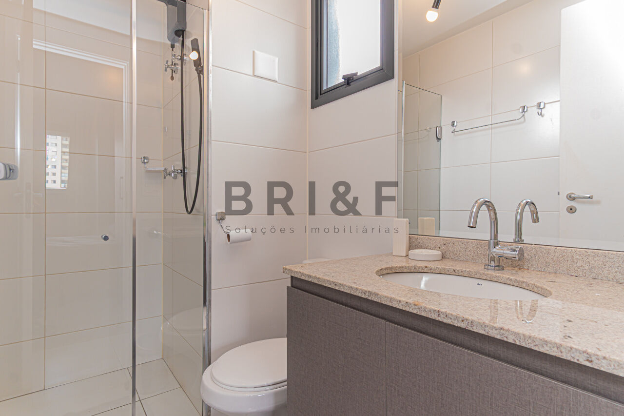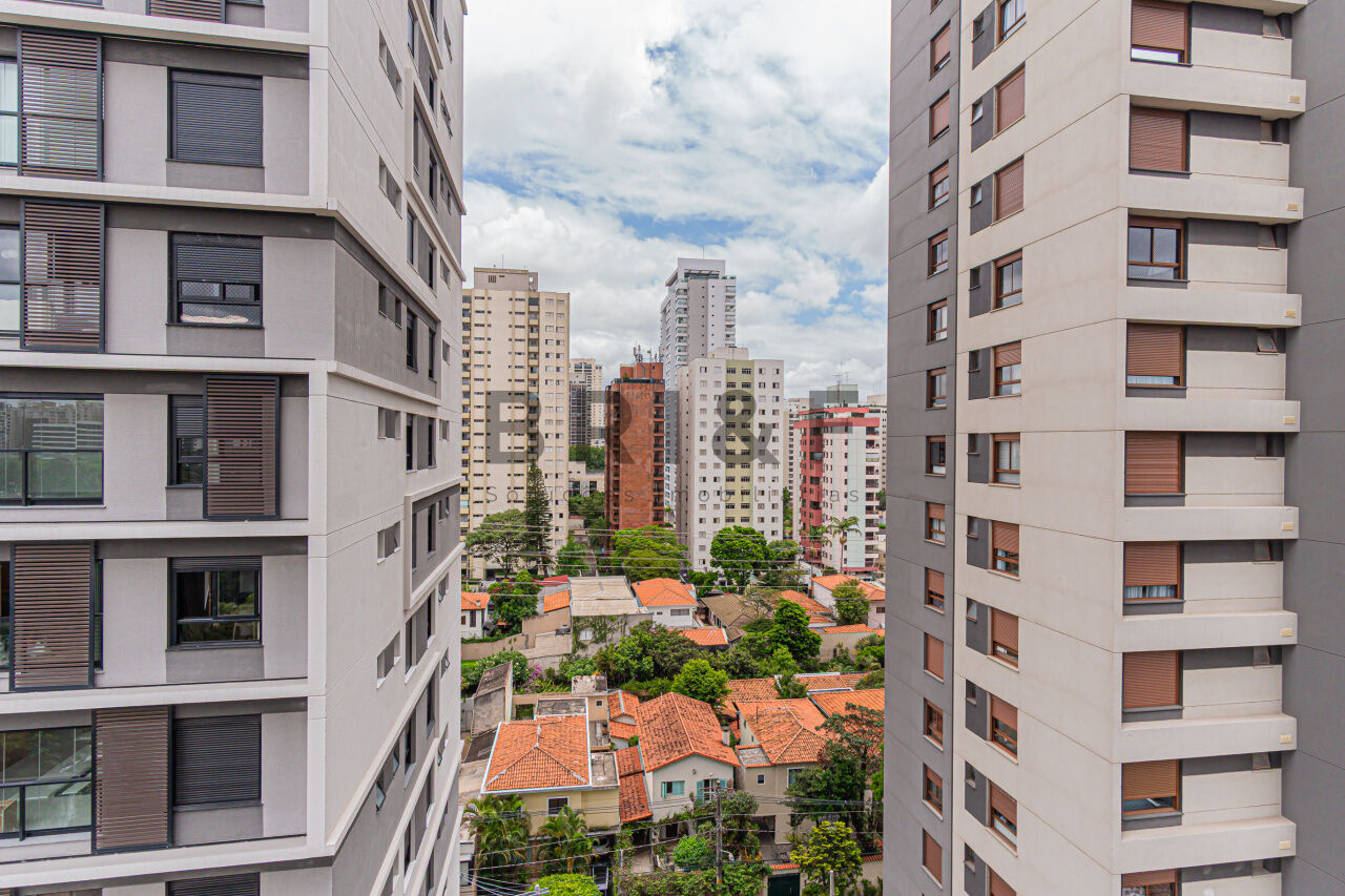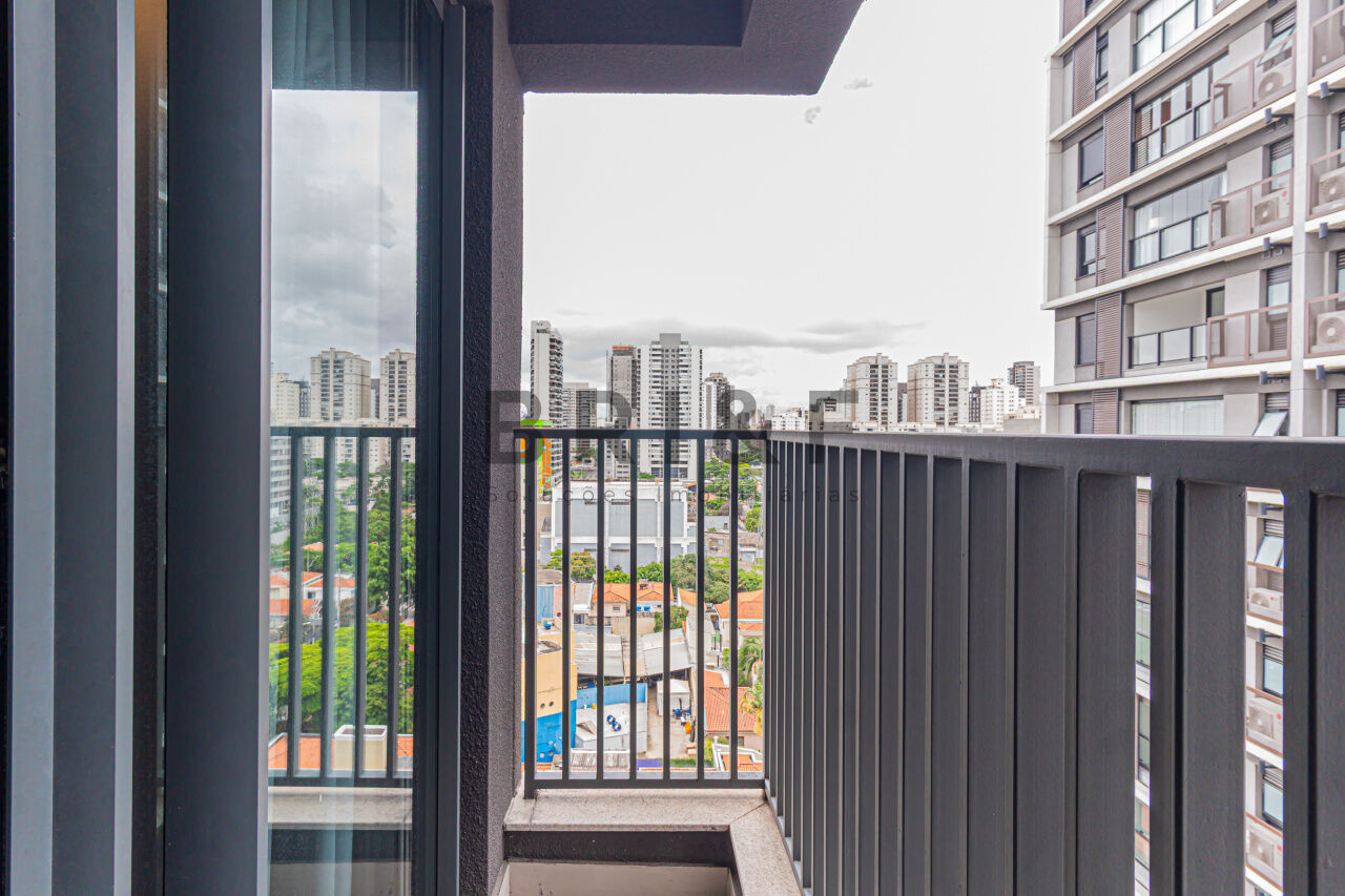 APARTAMENTO STUDIO, 25 M² 1 DORMITÓRIO NO BROOKLIN, mobiliado, com geladeira, cooktop, cama, armários planejados, televisão, micro-ondas, ducha, box, andar alto.
