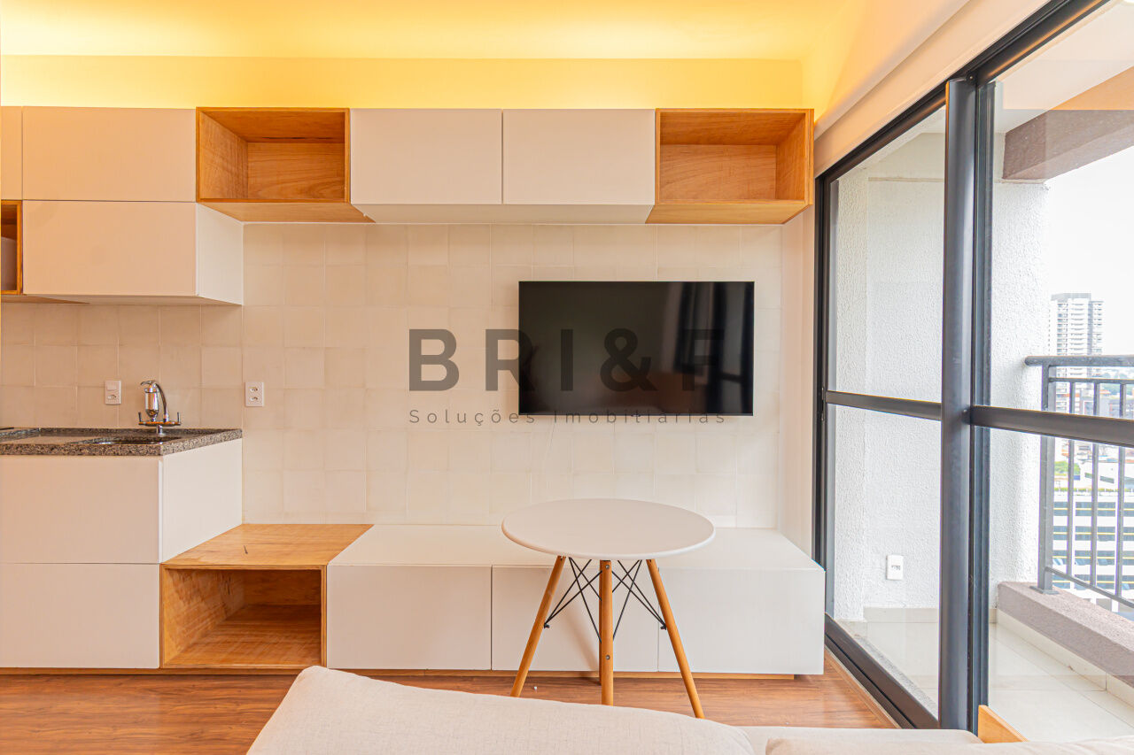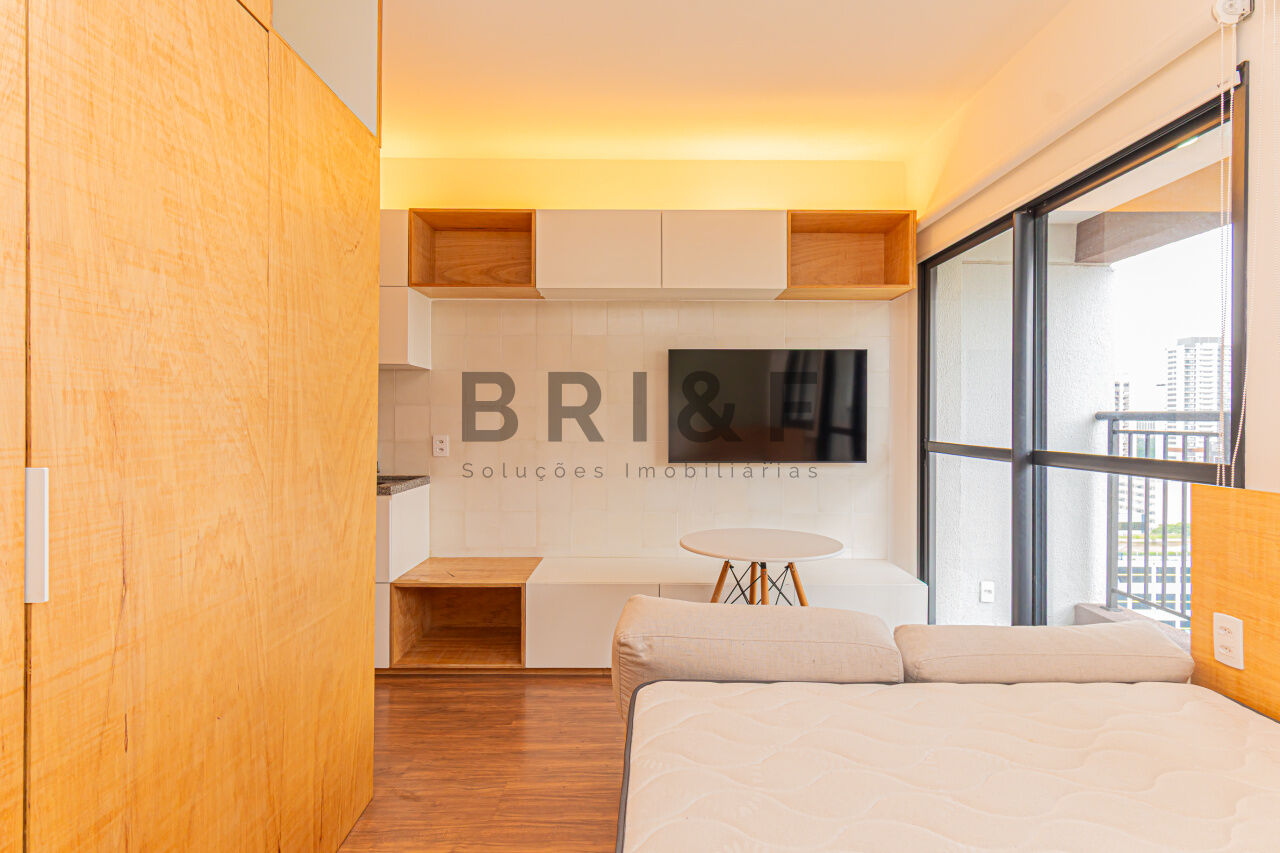 STUDIO À VENDA MOBILIADO, ENTRE O CAMPO BELO E BROOKLIN, COM 1 DORMITÓRIO, 1 BANHEIRO E VARANDA, PRONTO PARA MORAR